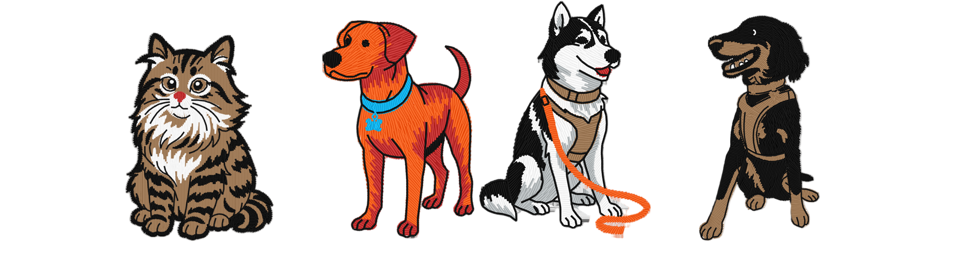 Kjæledyr, brodert med omsorg.